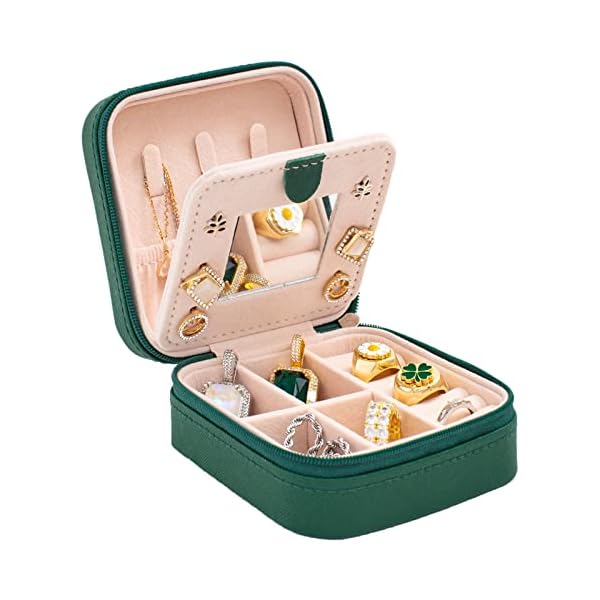 KElofoN Travel jewelry case Travel jewelry box Travel Jewelry Organizer Small box Gift for Girls Women with Mirror(Green)